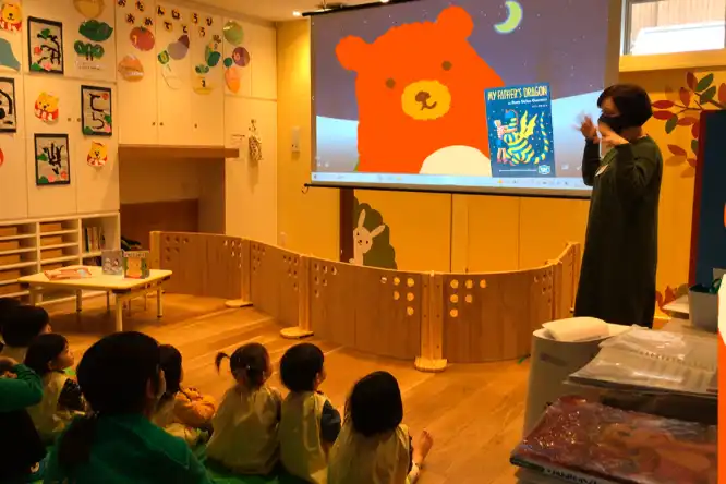 ネイティブの英語教師による英会話レッスンを毎週、外部の専門講師による知育教育やリトミックをそれぞれ月2回実施。少人数でアットホームな環境の中で楽しく学び成長します。