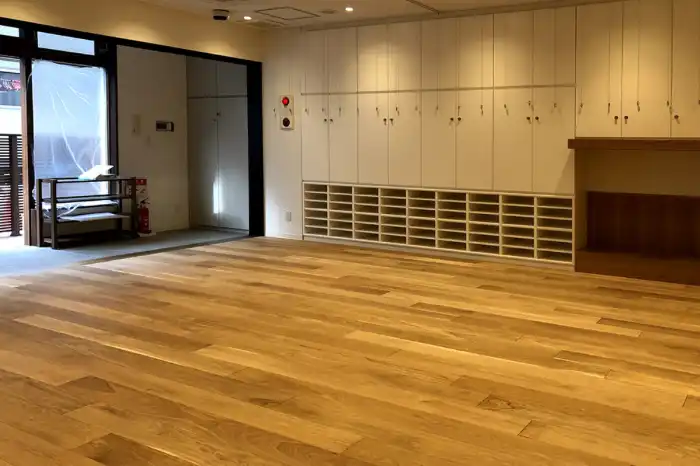 門扉と玄関の自動ドアに二重のオートロックを設け、不審者の侵入や保育室からの飛び出しによる事故を防ぎます。